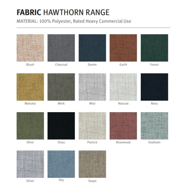 Fabric: Hawthorne 100% Polyester, Heavy Duty Commercial Rating