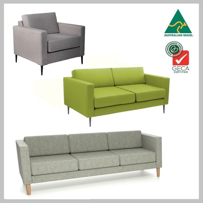 Australian made casual commercial seating. Designed with arms and loose cushions. High Density Foam set. Available 1, 2 or 3 seat version.