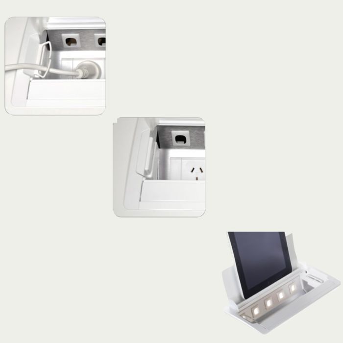 Accede with 8 X Auto Switched GPO with Provisions for 8 X 50mm data/AV Tiles