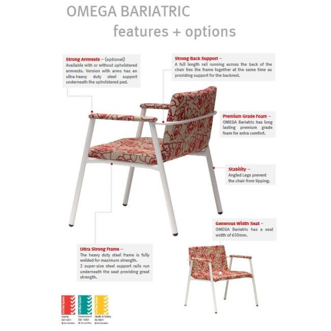 The Omega Bariatric Chair is a stylish and at the same time very robust and generous sized chair, perfect for Healthcare environments or anywhere a very durable chair is required.