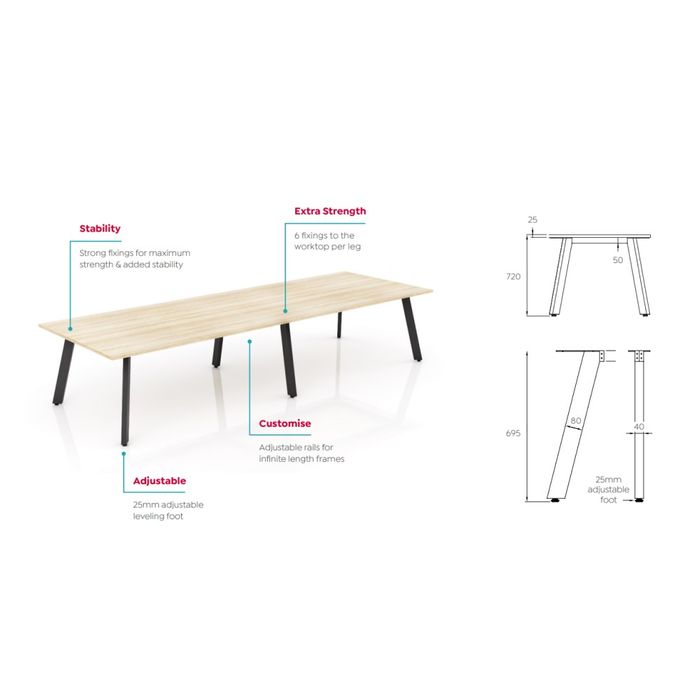 80x40mm legs with 25mm adjustment in each foot.