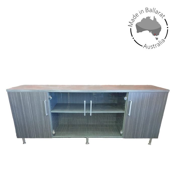 View Credenza with Glass Middle Doors & Solid Melamine End Doors