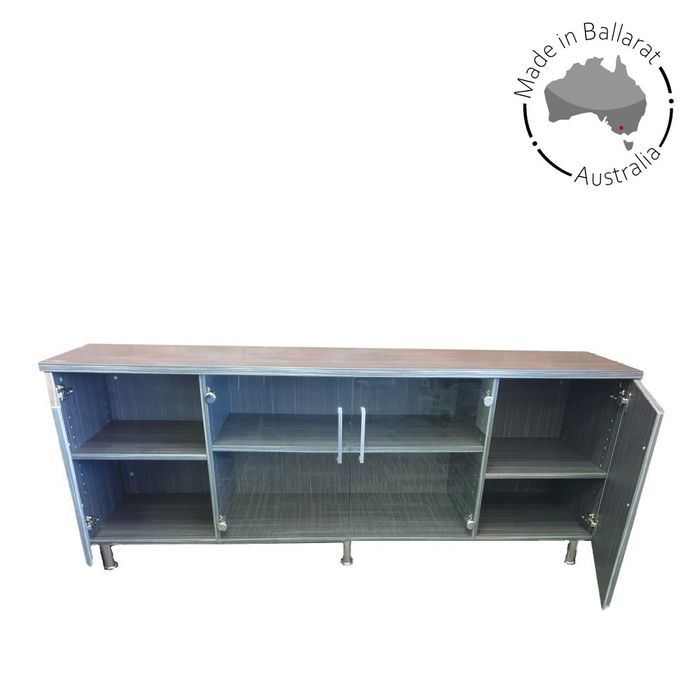 Both Ends: c/w solid melamine door, swing open non locking, c/w 1 x 18mm adjustable shelf