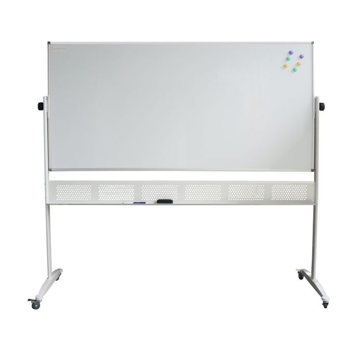 Double Sided Pivoting Mobile Porcelain Magnetic Whiteboard with Pen Tray