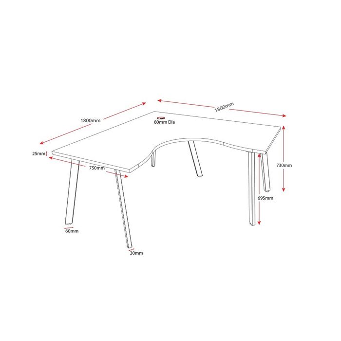 80mm Dia Cable Management Hole