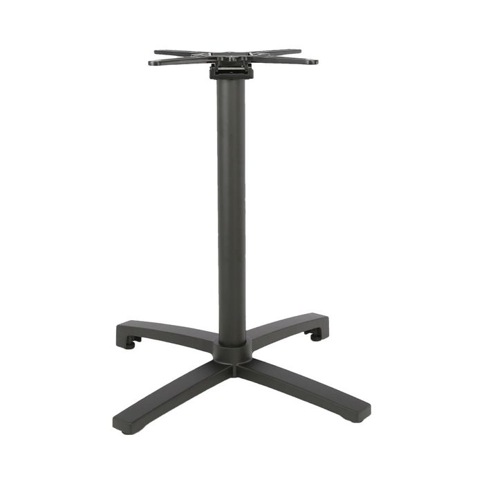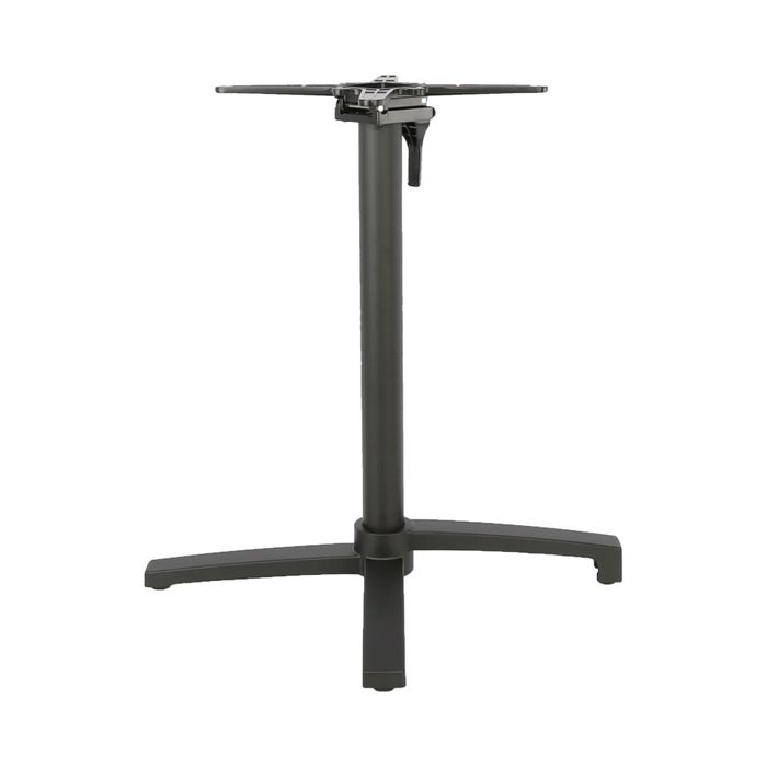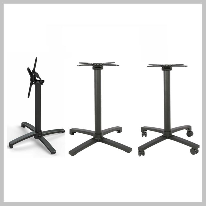 A versatile and durable folding Table Base for commercial applications. This table base offers a sleek and modern look. It features adjustable feet for stability on uneven surfaces and is suitable for various tabletop sizes and weights.