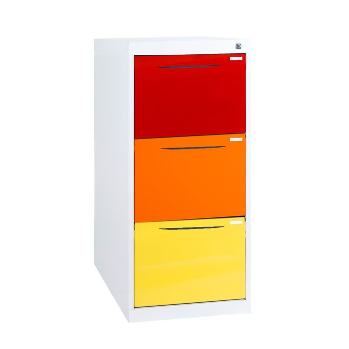 eg: Black or White Carcass with top drawer blue, then red, orange and yellow drawers