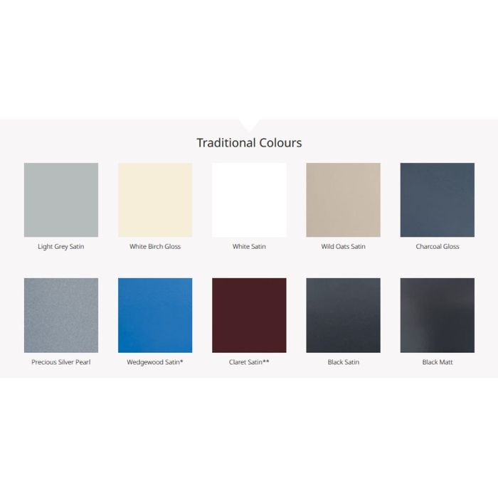 Colours: White, Wild Oats, Light Grey, White Birch, Precious Silver Pearl, Wedgewood, Charcoal, Claret