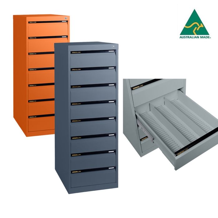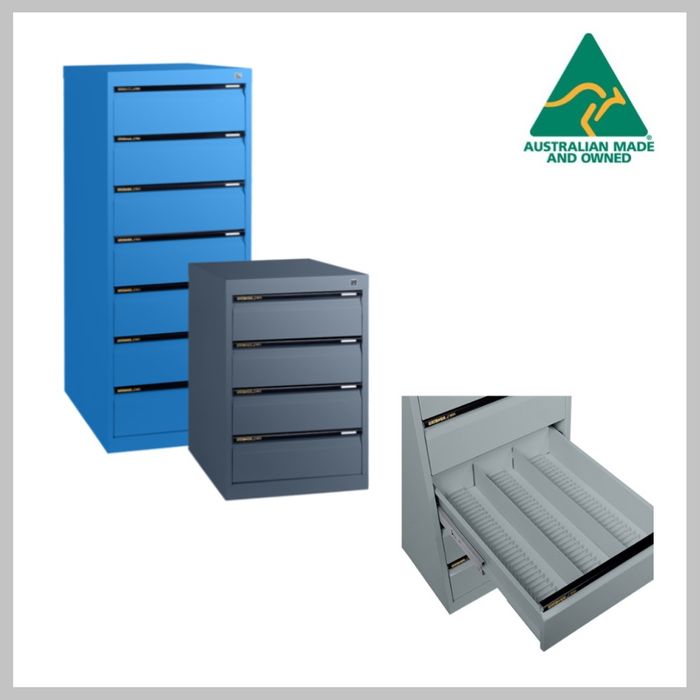 Cabinet designed to take 3 rows of CD's per drawer, however an inset would be required to assist the organisation.