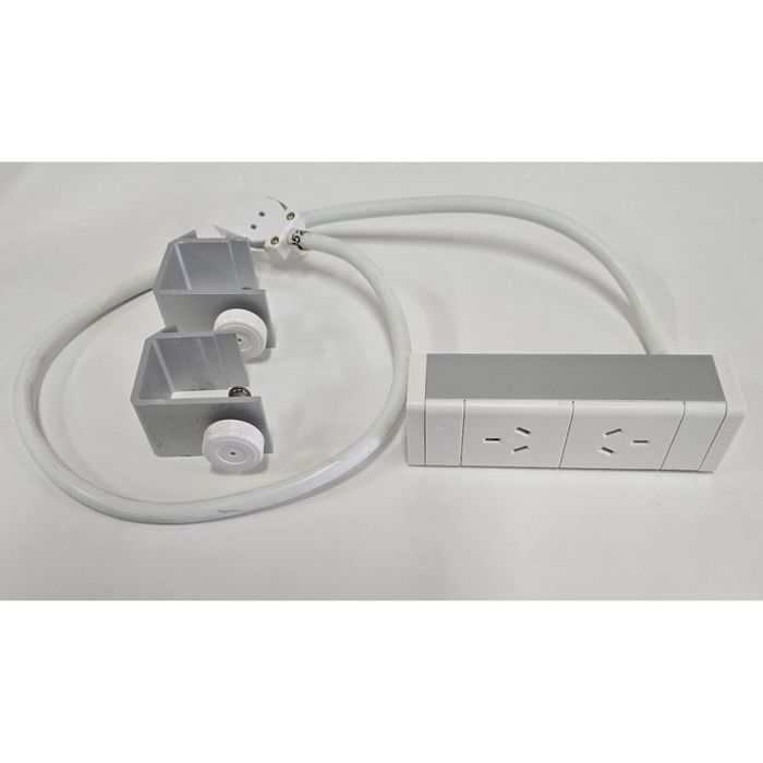 Secondhand Athena Power Rail, 2xGPO clamp on. White
