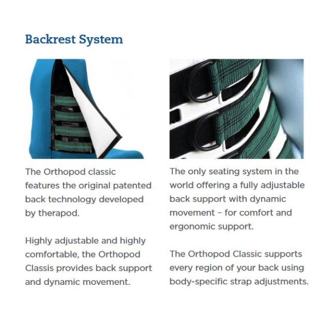 The Orthopod Contemporary features the original patented back technology developed by Therapod. Highly adjustable and highly comfortable. Offering fully adjustable back support with dynamic movement for comfort and ergonomic support.