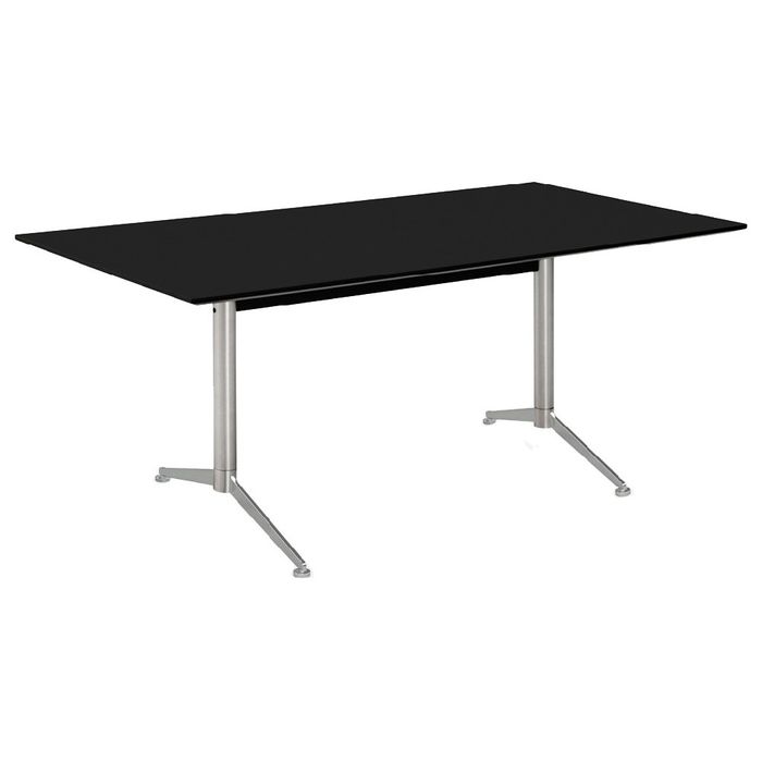 This brushed nickel table frames come in several sizes allowing for flexible options. The airy column construction gives the table a light floating look.