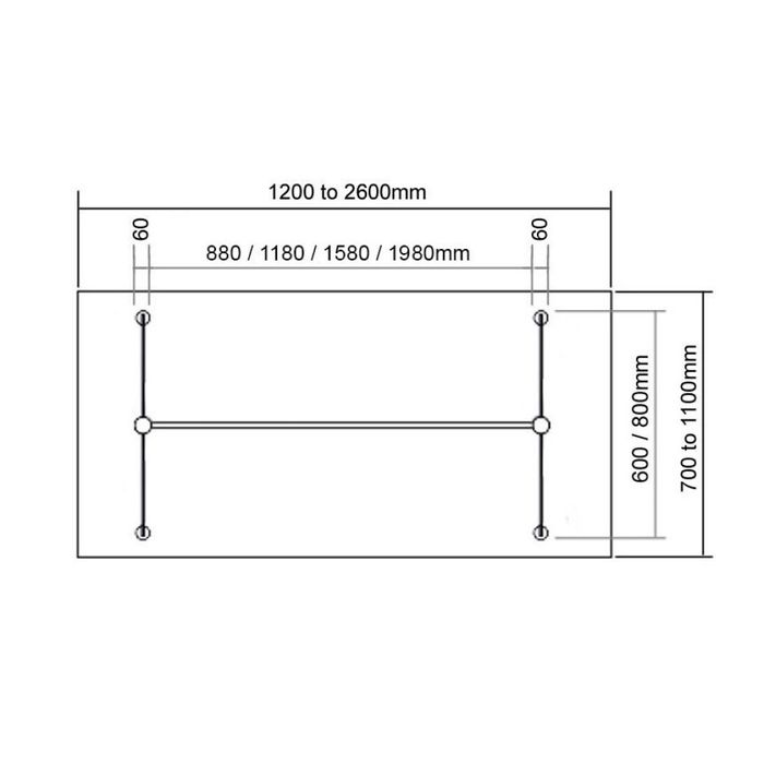 Suits top widths from: 900mm to 1100mm