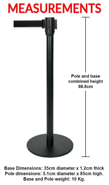 The base and pole height combined is 86.8cm (excluding signs) and there are a range of barrier pole attachments available.