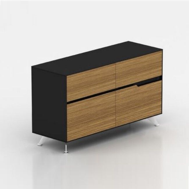 Buffet with four drawers, matt black 2 pack paint frame, and Timber Veneer drawers with aluminium feet.
