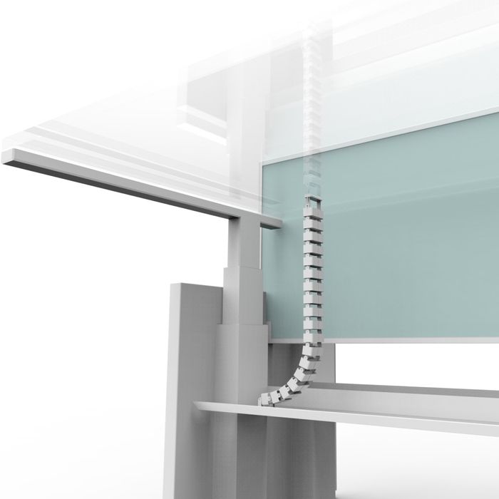 Trax umbilical is specifically designed for cable protection when bringing power and data cables in a height adjustable table application. Trax features either single or dual compartment for cable distribution allowing power and data cabling to be run separate or simultaneously when using conduit