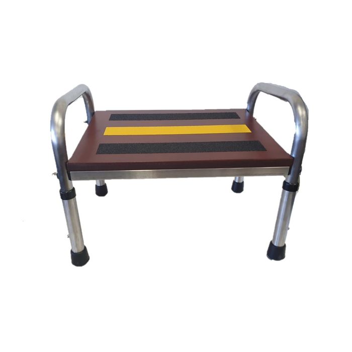 The footboard is made from wood, with Slip Resistant Strips on its surface.