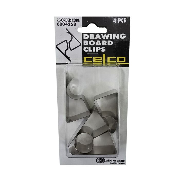 Celco Drawing Board Clips are designed for use with drawing boards to hold down drawings without any need for adhesive tapes.
