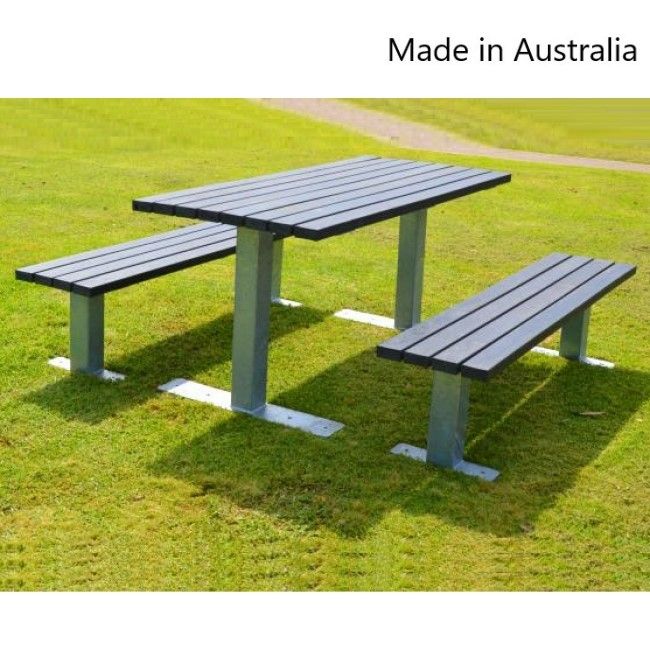 Outdoor Table & Bench Seats & Galv Fr & Recycled Plastic Slats