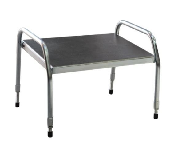 Designed to withstand sterilisation from strong cleaning chemicals. It is zinc plated and has a Vinyl non-slip top (no carpet).