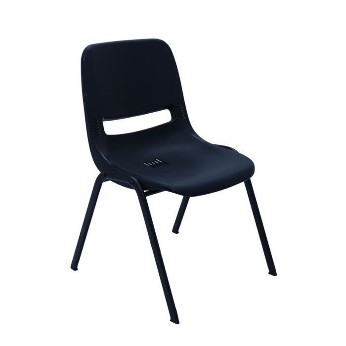 Strong durable stacking chair with polypropylene shell and black powder coated underframe.