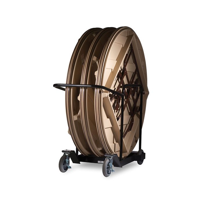 This Round Table Cart is designed to hold 6 tables and to protect the table edges by being low to the ground ensuring the tables easily roll off the cart.