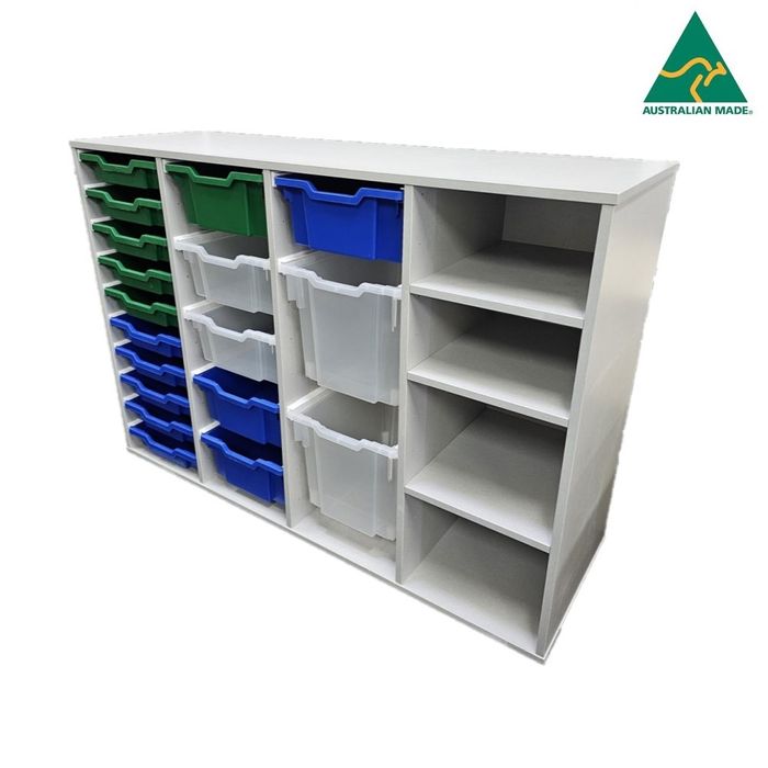 Includes 10 x Shallow, 6 x Deep, 2 x Jumbo. 4 x Open Shelves