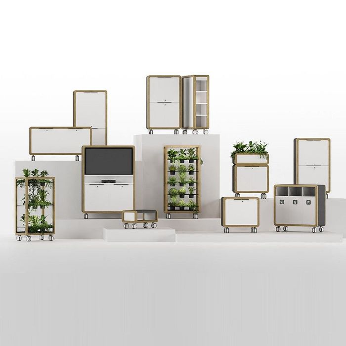 An innovative collection of mobile furniture designed to revolutionise office and educational environments. Each piece is crafted with large medical-grade castors for ultimate moveability, allowing you to reconfigure your space to suit your needs effortlessly. The range’s acoustic elements, featuring high NRC-rated recycled boards, enhance sound absorption and create a quieter, more focused environment. Timber accents from FSC-certified sources add a touch of natural elegance, making each piece both functional and stylish.