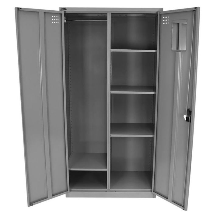 The Steelco Personnel Wardrobe offers a combination of hanging and shelf storage space and features ventilation holes on each door. This product is ideal for storing personal items such as clothing, shoes and helmets.