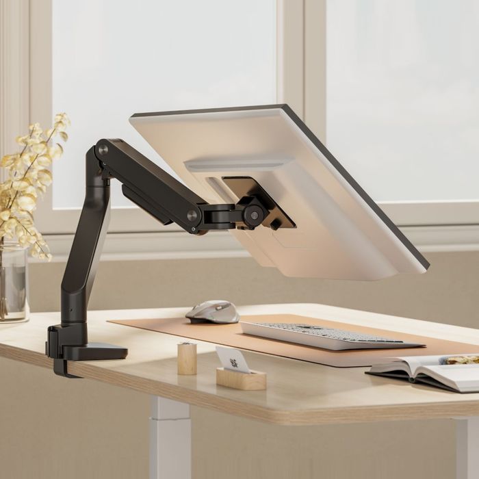 The optimised head design ensures smooth adjustment with a solid, non-droop fixing, while the streamlined top clamp enables installation without crawling under the desk.