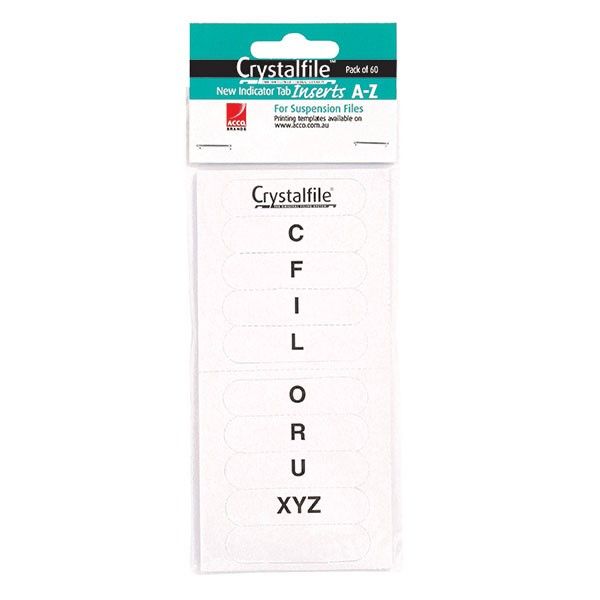 - Crystalfile tab inserts A - Z White Pack of 60