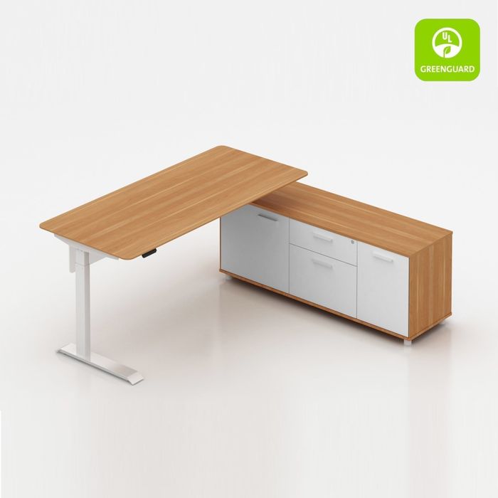 Potenza Electric Height adjustable Desk with Cabinet Return - High-Quality Melamine: Durable and visually appealing finish, elegant and modern.